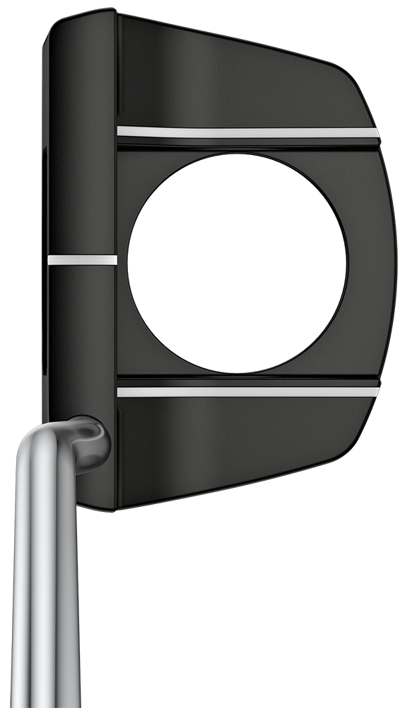 A trio of white lines, ball-width cavity floor and a ball-pickup center cutout (for gimmes) distinguish the easy-to-aim Tyne G. The cutout redistributes mass to the perimeter for added stability and forgiveness to improve accuracy. A PEBAX insert with shallow milled surround ensures a softer feel and consistent ball speed with pleasing acoustics.