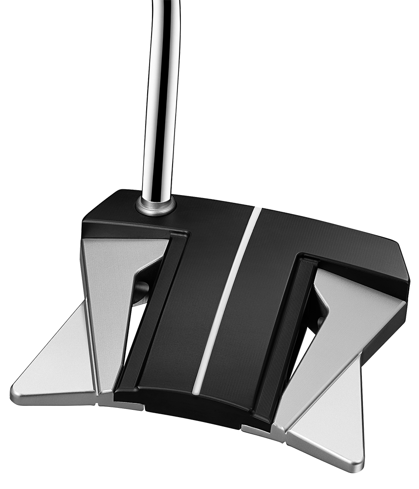 A unique pairing of traditional topline visibility and sight dot alignment with the sweet spot combined with elongated sight lines milled into the raised flange from the face’s leading edge to the back of the putter head frame the golf ball and provide expert alignment guidance at address.